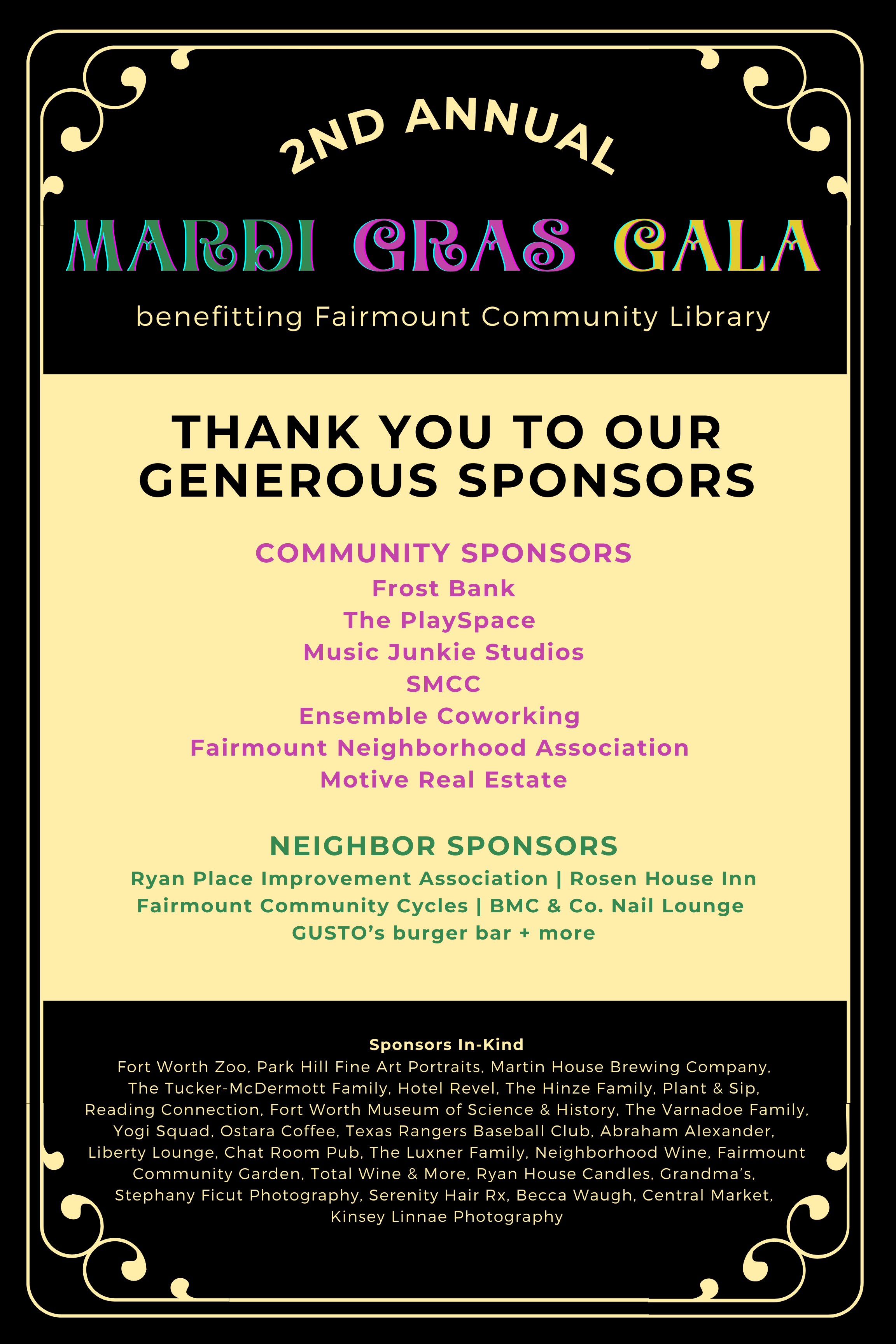 2nd Annual Mardi Gras Gala benefitting Fairmount Community Library